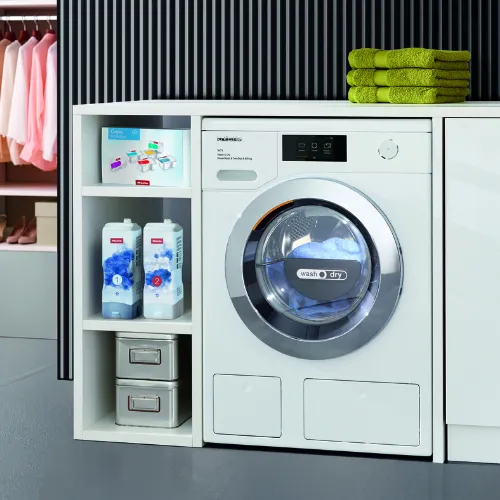 洗濯乾燥機・洗濯機・衣類乾燥機の3つのラインナップ。ミーレのランドリー機器はカウンター内にビルトインすることもでき、統一感のあるランドリールームを実現することも可能。高温洗浄でしっかり汚れを落としながらも、ハニカムドラムが衣類をいたわりながら、最上の洗い上がりに仕上げます。