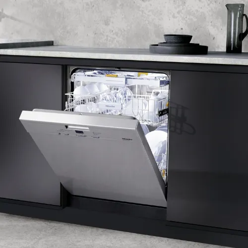 ミーレビルトイン食器洗い機は、予洗いは必要ありません。節水節電に特化したエコプログラムや最高75℃の高温洗浄、汚れの程度に応じて工程を調整するオートセンサーを搭載。1929年ヨーロッパで初めて食器洗い機を開発したパイオニアとして磨き続けた技術で、省エネ性と高い洗浄力を両立させます。