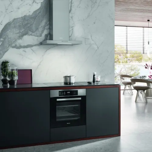 ステンレスドアのフリースタンディングタイプとキャビネットと同じデザインのドアで統一できるビルトインタイプが登場。冷凍冷蔵庫だってビルトインできるミーレなら統一感が生まれ、キッチンがまるでインテリアのように。ミーレオーブンのベーキングトレイがそのまま入るのも”ALL Miele”が発揮する逸品。