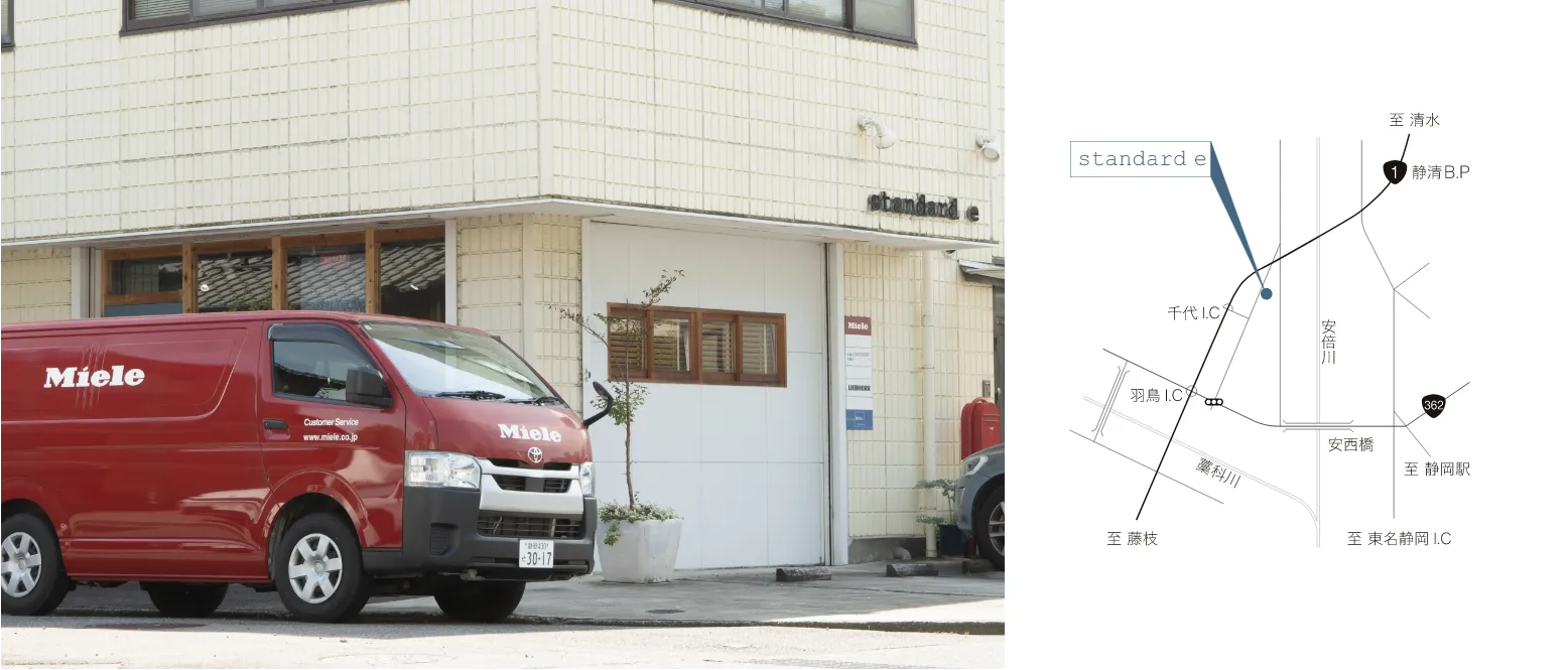 スタンダード・イーは、Miele Premium Partner Shop 静岡です。静岡・山梨を中心としたエリアでのご相談を承っております。これまで一般のお客様とのお取引以外にも、設計事務所、工務店などの建築関係法人のお客様ともお取引を多く対応してまいりました。ショールームには多くの展示実機を揃えており、機器体験会、施工に関してのご相談、その後のアフターフォローまで対応させていただきます。ぜひ一度お問い合わせください。